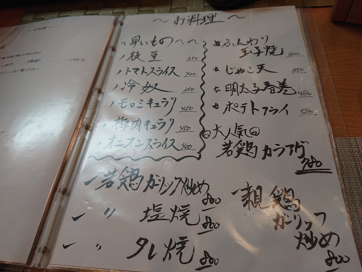 For those seeking hearty options, the 豚のしょうが焼き (ginger pork) and 豚のガーリック焼き (garlic pork) deliver rich flavors with tender pork that’s both savory and aromatic. The 親子丼のあたま (chicken and egg donburi - the top part) offers a comforting mix of chicken and eggs, cooked to perfection. Also notable is the 焼きおにぎり味噌 (grilled rice ball with miso), which adds a deep, umami-rich flavor to the grilled rice ball experience.